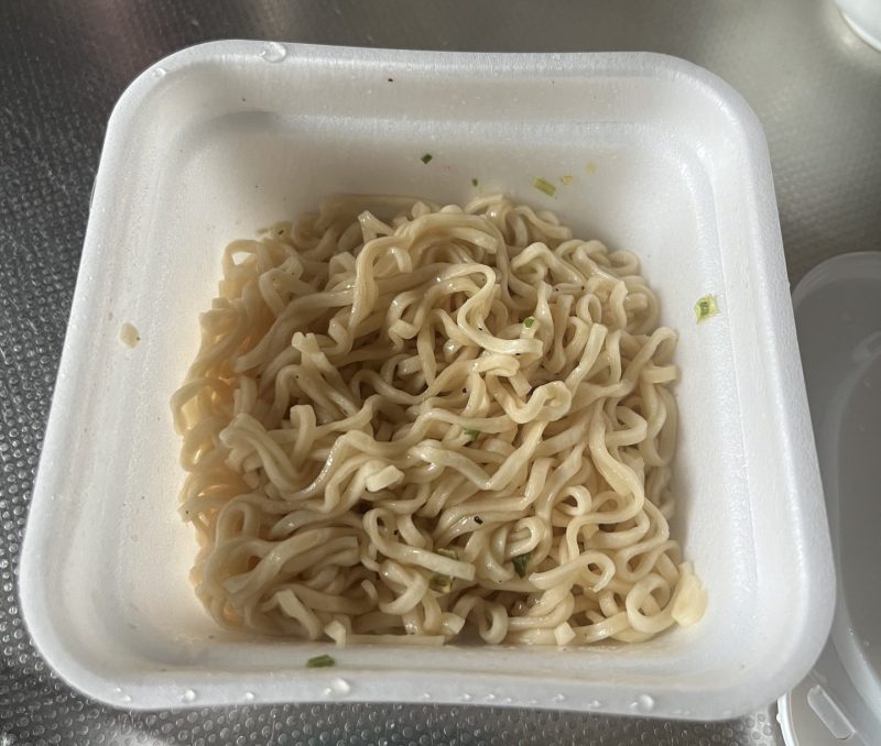 麺はカッ〇ヌードルみたいで、にんにくらしき匂いが食欲をそそり、あっという間に食べてしまいました。
