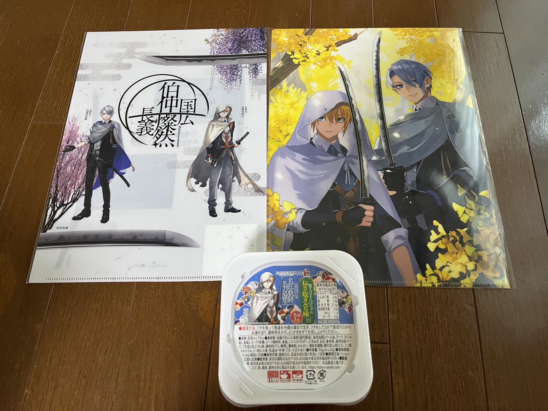頼んでいたのは、クリアファイル二種類と、ミニカップ焼きそばです。