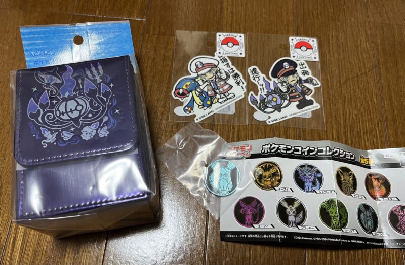 ケースの中にはポケモンカードの代わりに、ステッカーやポケマスのアクスタキーホルダーなどを入れる事にしました。