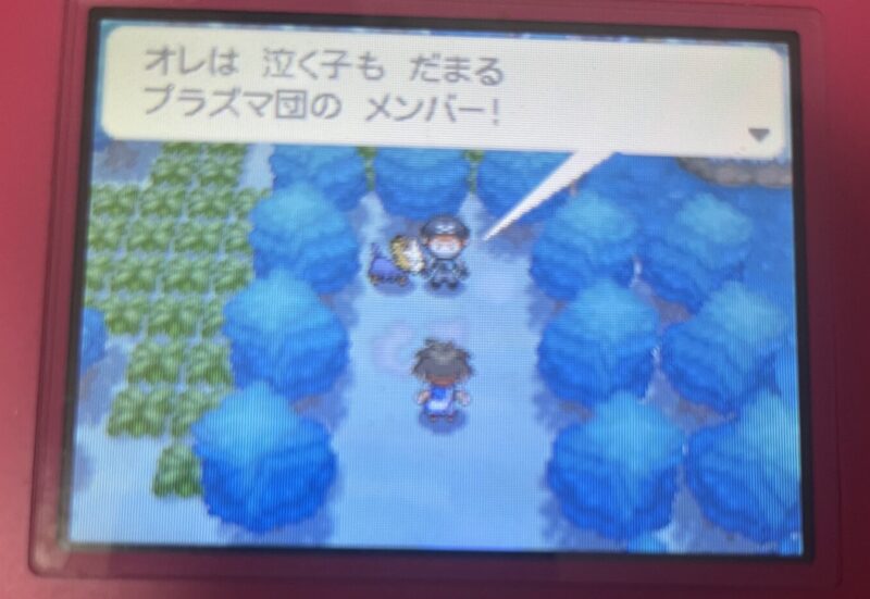 奥に進んでいったら、いつの間にか黒くなってる道に迷ったプラズマ団らしき人が。