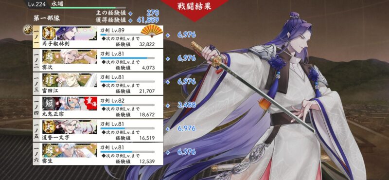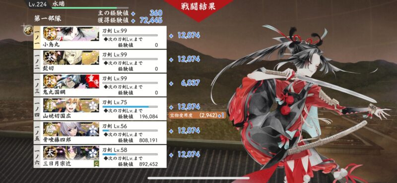 経験値が沢山もらえるので、育成中の刀と極の刀達の育成がすっごい捗りました。