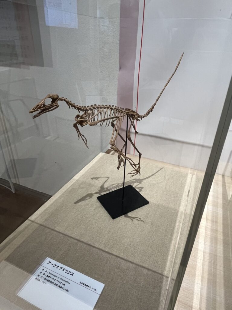 その骨の割には、近くにあった生きていた頃のイメージ図は、一見足はしっかりしているように見えたので、始祖鳥をモデルにしているであろうアーケオスを思い出して、「アーケオスの足はしっかりして見えるけど、あれほぼ羽毛か筋肉だな」となり、「だから防御も特防も低くて、特性よわきなのかもな」と納得しました。